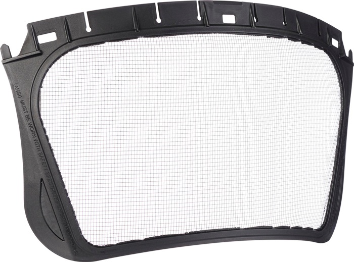 aus hochwertigem Edelstahl · spezielle Netzstruktur · 24 Prozent Lichtreduktion für eine optimale Sicht · das Visier ist mit 54 g besonders leicht · kompatibel mit den Peltor Schutzhelmen G22 und G3 sowie der Gesichts- und Kopfschutzkombination G5 · das Visier trägt die Kennzeichnung F und bietet somit einen effektiven Schutz vor frontal und seitlich eintreffenden Partikeln mit niedriger Energie (45m/s) · Einsatzgebiete des 3M Peltor Netzvisiers 5C-1 liegen in der Land- und Forstwirtschaft sowie im Gartenbau · zur Anbringung an die Peltor Schutzhelme ist die V5 Halterung erforderlich