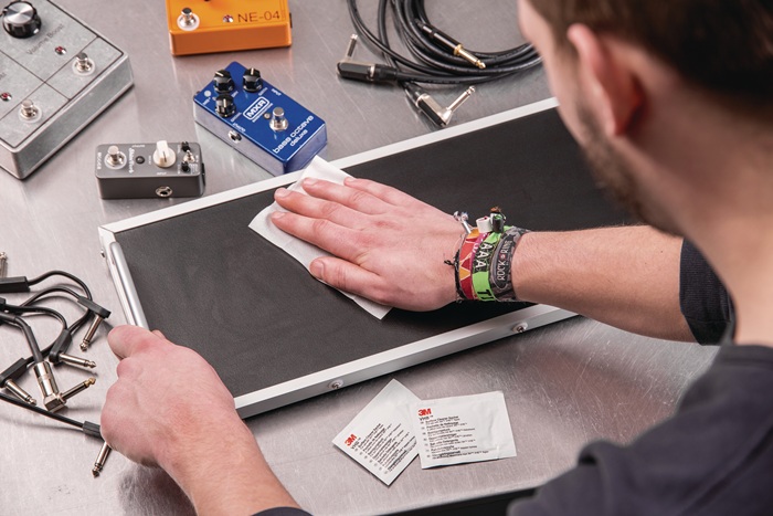 reinigt und entfettet · farblos und geruchsarm · verdunstet schnell, ohne Rückstände zu hinterlassen · reduzierte Nachbearbeitung · optimale Haftung für das Klebeband · Kartoninhalt: 100 Tücher, einzeln verpackt