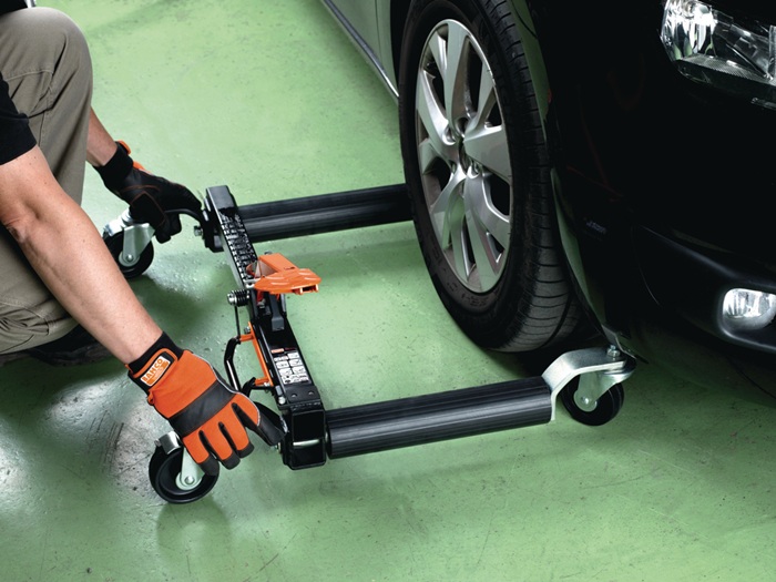 Zum mühelosen Anheben und Manövrieren von verschlossenen oder blockierten Pkw oder leichten Nutzfahrzeugen in Werkstätten, Ausstellungsräumen, Parkplätzen oder engen Räumen · Durch Betätigen des Fußpedals wird das Rad des Fahrzeugs im Rollwagen festgeklemmt und schnell angehoben · Aus Kunststoff zur Vermeidung von Beschädigungen während des Anhebens und Schiebens · PVC ummantelter Griff für hohen Komfort · 4 kugelgelagerte Lenkrollen ermöglichen das Bewegen in jede Richtung und einen schnellen Richtungswechsel · Bremse an den beiden hinteren Lenkrollen zum sicheren Festestellen in einer Position