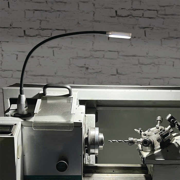 Hochleistungs-LED im Aluminiumgehäuse, mit Flexwelle und gummiummanteltem Magnetfuß · blend- und flackerfrei · gleichmäßige, reflexionsarme 175° Ausleuchtung, 60x40cm Lichtkegel, bei 40cm Entfernung · Gesamtlänge 640mm