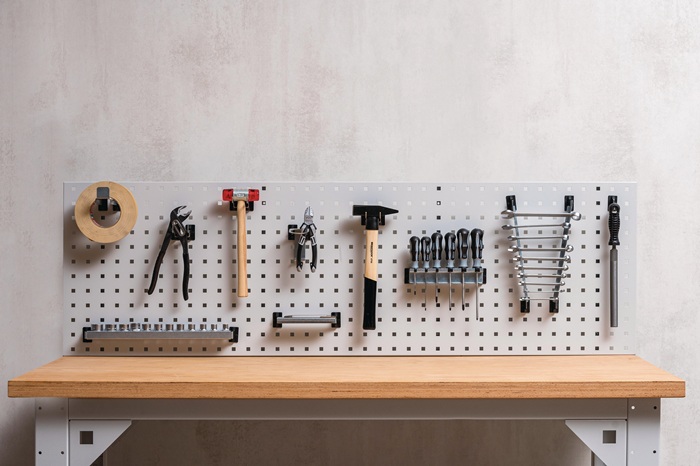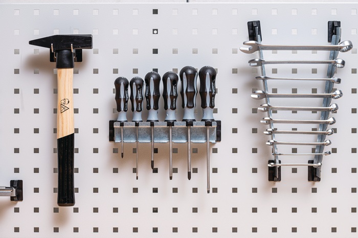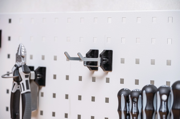für Lochplatten · verzinkt · mit Kunststoffträger · schräges Hakenende 45° gewinkelt · VE = 5 Stück