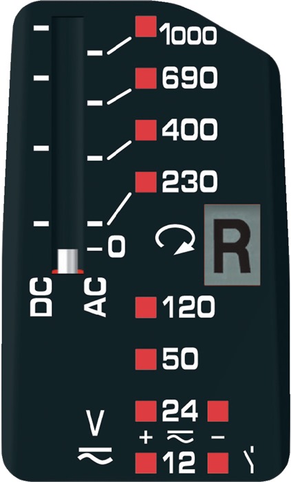 Spannungsprüfung von 12 - 1000 V AC/DC (LED/Tauchspule) · Drehfeldrichtungs-/ Phasenprüfung (LCD) · Polaritätsprüfung (LED) · Direktanzeige ohne Drucktasterbetätigung (hochohmig) · Lastzuschaltung über Drucktaster (niederohmig) · bewusste Auslösung des FI-Schutzschalters · Vibrationsalarm · Gehäuse mit gummierter Grifffläche · CAT IV 600 V, CAT III 1000 V · zugelassen nach DIN EN 61243-3, VDE 0682-401
