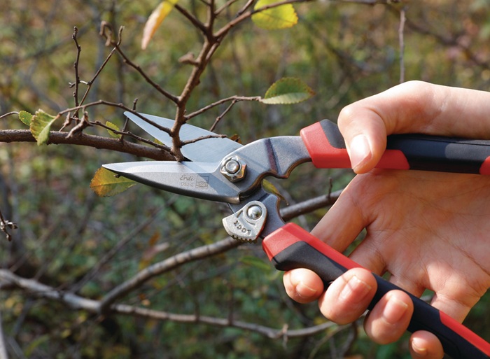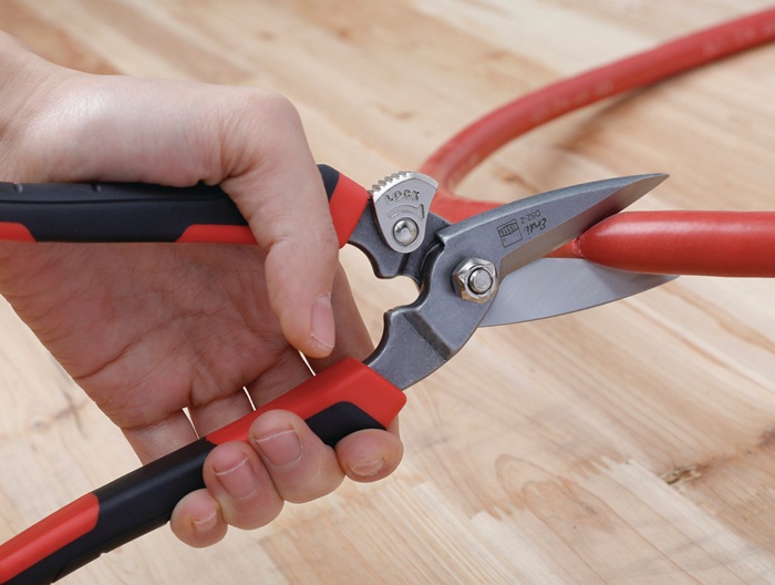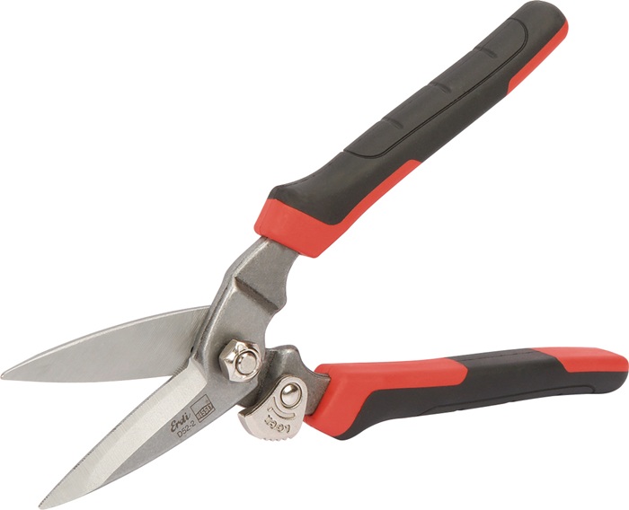Schneide und Griff in einem Stück · geschmiedet · Schneide mit Verzahnung für abrutschsicheres Arbeiten · ERGO-Griff für ermüdungsarmes Arbeiten · sandgestrahlte, verchromte Klingen zum Schutz vor Korrosion · Schneidet bis zu 0,6 mm dicken, kaltgewalzten Stahl · SB-verpackt