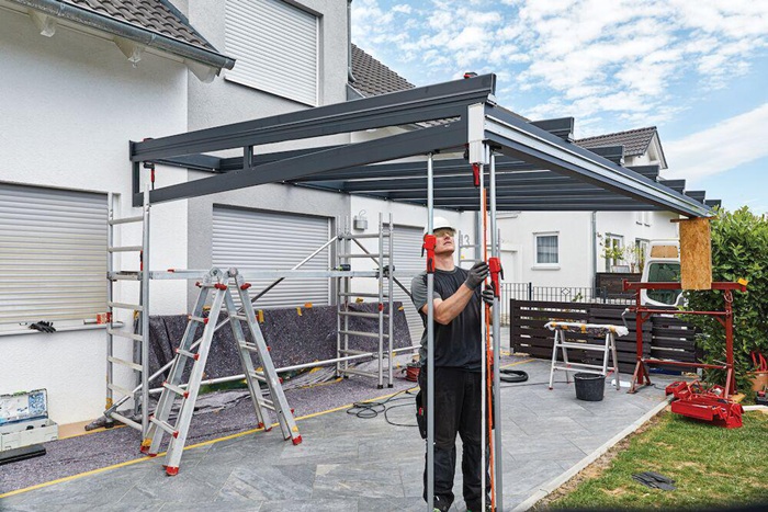 Zubehör für Deckenstützen mit einem Außenrohrdurchmesser von 29 mm und 32 mm · stabiler Stand, da Kraft der verspannten Deckenstütze punktuell nach unten wirkt · Deckenstützen lassen sich auch ohne obere Verspannung frei im Raum platzieren und sind damit auch im Außenbereich einsetzbar · schnelle, werkzeuglose Montage · leichte und stabile Konstruktion · dank Alumiuniumprofilen und glasfaserverstärktem Kunststoff · SB-verpackt