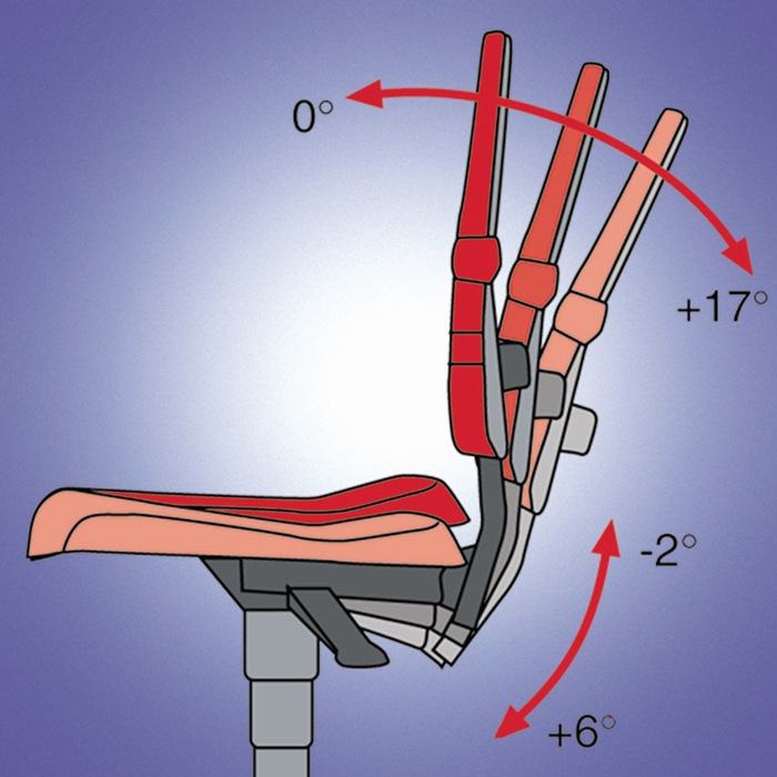 nach DIN 68877 · bedienungsfreundliche Gasfeder-Sitzhöhenverstellung · Sitz und Rückenlehne aus bruch- und stoßfestem Kunststoff (Polypropylen) · Rückenlehnen-Höhenverstellung mit Höheneinstellskala · Synchronautomatik passt die Neigung von Sitz- und Rückenlehne automatisch der Sitzhaltung an und ist in jeder Position fixierbar besonders bei häufig wechselnder Arbeitshaltung empfehlenswert · der Gegendruck der Rückenlehne kann durch die Gewichtsregulierung individuell auf das Körpergewicht eingestellt werden · Fünffuß-Untergestell aus Profilstahl, flach auslaufend, kipp- und stolpersicher · Stahl- und Kunststoffteile basaltgrau, RAL 7012 alle Stuhlteile sind voll recyclebar · Untergestell mit abriebfesten Kunststoff-Bodengleitern und mitlaufender Aufstiegshilfe, stufenlos verstellbar, Tritt nach oben um 90 Grad klappbar