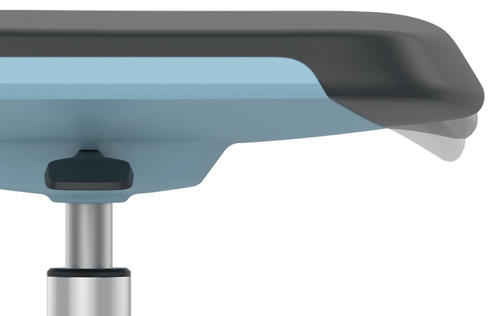 nach DIN 68877 · bedienungsfreundliche Gasfeder-Sitzhöhenverstellung · ergonomisch geformter Sitz und Rückenlehne mit robustem Integralschaumpolster beständig gegen leichte Säuren und Laugen, leicht abwaschbar · Rückenlehne mit 3D-Flexfunktion passt sich den Bewegungen des Nutzers an · Fünffuß-Untergestell aus Kunststoff, flach auslaufend, kipp- und stolpersicher · Untergestell mit abriebfesten Kunststoff-Bodengleitern und höhenverstellbarem Fußring für erhöhte Sitzposition