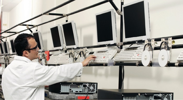 stabiler Standfuss aus Aluminium mit Wechselgleitern aus Filz oder Kunststoff je nach Bodentyp · ergonomische, um 4 Grad geneigte Standsäule aus gestrahlten Aluminium · breiter Komfort-Sitz (500 mm) aus Soft-Touch-Integralschaum, um 20° schwenkbar · stufenlose Gasfeder-Höhenverstellung · seitlich integrierte Halte-, Zieh- und Tragegriffe