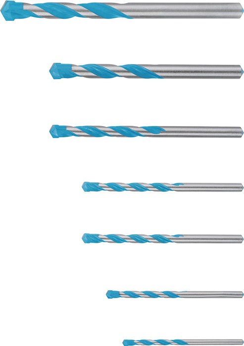 maximale Präzision beim Bohren unterschiedlicher Materialien · für präzise Bohrungen in harte Materialien, wie Kacheln oder Granit, Beton, Ziegel, Holz und Metall · scharfe Spitze · Zylindrischer Schaft für Zahnkranzbohrfutter