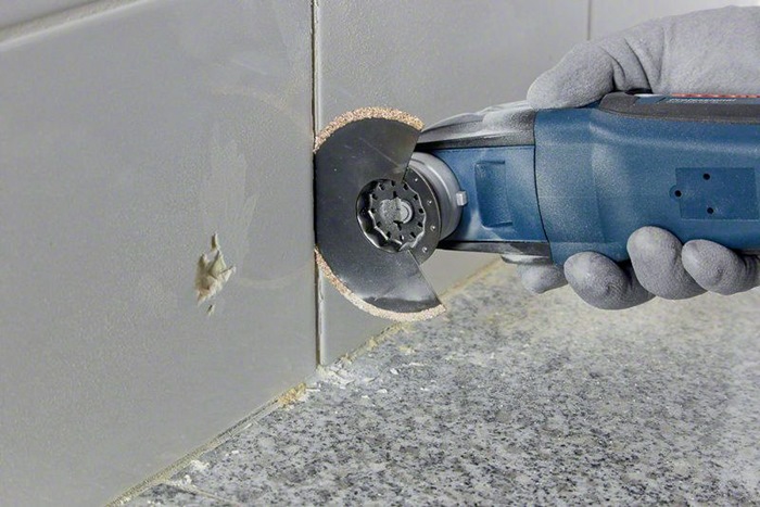 für Renovierungs- und Umbauarbeiten (z. B. Fugen an Wand- und Fußbodenfliesen ausfräsen, Mörtel oder Fliesenkleber entfernen, kleinere Ausschnitte in weiche Wandfliesen fräsen)