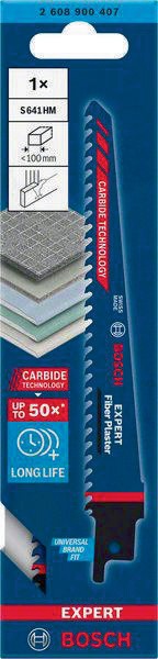 langlebiges Schneiden von Faser- und Gipsmaterial · mit Carbide Technology · relativ kurzes, spitzes Blatt zur guten Kontrolle und Zugang zu engen Bereichen · passend für alle S-Schaft-Säbelsägen