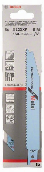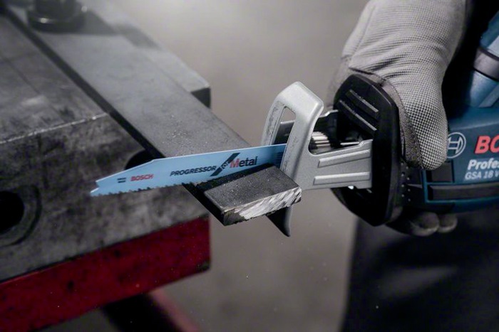 Progressor for Metal · Zahnausführung: geschränkt · gefräst · progressiv ansteigende Zahnteilung (1,8 – 3,2 mm) ermöglicht schnelle Schnitte in Material mit unterschiedlichen Dichten · Bimetallblatt für das Schneiden von Stahlrohren und -profilen mit normaler Stärke · spezielle Zahnform für das Schneiden von Stahl (1–8 mm) · Schnittleistung 100 mm (Standard-Blattlänge) · Einsatzbereiche: Für dünne bis starke Bleche (von 1 bis 8 mm Stärke) · für dünne bis kräftige Profile (mit Durchmesser kleiner als 100 mm)