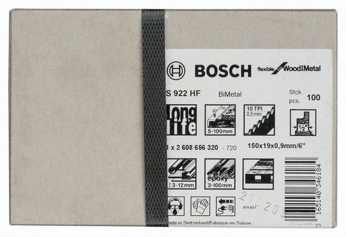 Säbelsägeblatt S 922 HF. Flexible for Wood and Metal. Werkstoff: BIM. Zahnausführung: geschränkt · gefräst. Für Palettenreparatur. Einsatzbereiche: Für Holz mit Nägeln/Metall (kleiner als 100 mm Stärke) · für Metallbleche · Rohre · Aluminiumprofile (von 3 bis 12 mm Stärke). Inhalt der Verkaufsverpackung: 100 Stück.