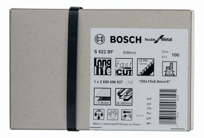 Säbelsägeblatt S 922 BF. Flexible for Metal. Werkstoff: BIM. Zahnausführung: geschränkt · gefräst. Einsatzbereiche: Für starke Bleche (von 3 bis 8 mm Stärke) · für massive Rohre/Profile (mit Durchmesser kleiner als 100 mm). Schneller Schnitt. Inhalt der Verkaufsverpackung: 100 Stück.