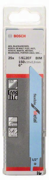 Säbelsägeblatt S 922 EF. Flexible for Metal. Werkstoff: BIM. Zahnausführung: geschränkt · gefräst. Einsatzbereiche: Für dünne Bleche (von 1,5 bis 4 mm Stärke) · für Rohre/Profile (mit Durchmesser kleiner als 100 mm). Inhalt der Verkaufsverpackung: 25 Stück.
