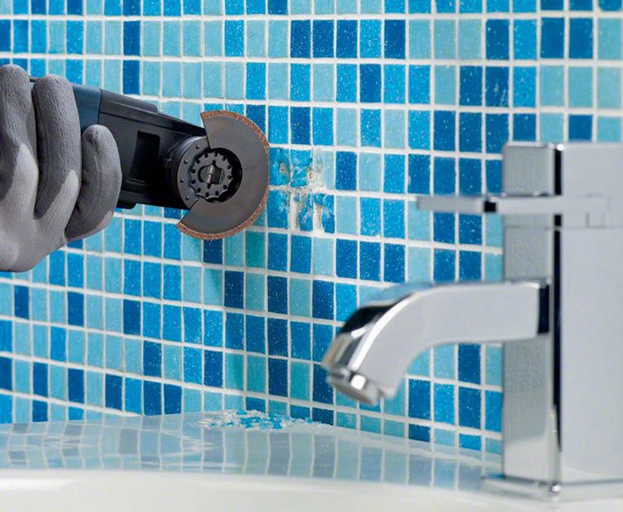 Carbide-RIFF Schmalschnitt-Segmentsägeblatt ACZ 70 RT5 · eignet sich zum Entfernen von Mörtel und abrasivem Material · das besonders dünne Blatt von 1,6 mm Stärke erzeugt präzise Feinschnitte · ermöglicht perfekte Arbeitsergebnisse beim Ausfräsen besonders schmaler Fliesenfugen oder sogar glatter Schlitze in Porenbeton und weichen Backstein zum verdeckten Verlegen von Kabeln und Rohren · auch lassen sich mit ihm präzise Aussparungen in abrasive Materialien wie Zementfaserplatten und Glasfaser-/epoxidharzverstärkte Kunststoffe schneiden · mit Hartmetallkorn der Körnung 50 besetzt