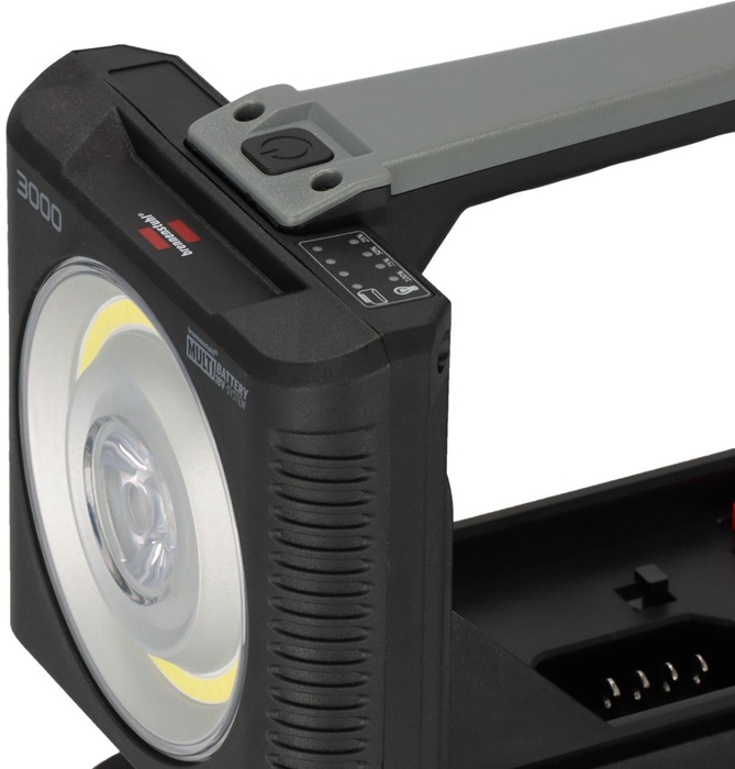 2 in 1: Handscheinwerfer und Arbeitsstrahler in einem · mit ergonomischem Griff und verstellbarem Magnetfuß · kompatibel mit verschiedenen 18V Akkus (verschiedene Ah Klassen) der Powertool-Hersteller Bosch Professional, Dewalt, Festool, Flex, Makita, Metabo CAS und Milwaukee · mit Ein/Aus Schalter · Schutzart: IP54 · Farbtemperatur: 6500K · Schutzklasse: III IK08 BGI608 K2: Einsatz für den rauen Betrieb mit hohen mechanischen, physikalischen und chemischen Einwirkungen