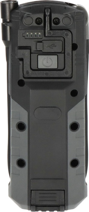 extrem robuste Inspektionsleuchte mit tauschbarem Li-Ion-Akku und einer Ladestandsanzeige · IP54 · verfügt über vier verschiedene Schaltstufen (Spot - COB: 100%-50%-25%) · kann über die USB C-Ladeschnittstelle mit dem mitgelieferten USB C-Ladekabel oder über das separate wireless Ladepad (nicht im Lieferumfang enthalten) aufgeladen werden · gummierte Oberfläche · COB LED 1000 lm vorne, 380 lm (Spot) · zusätzliche, flexible SMD LED Lichtquelle · Magnet auf der Rückseite und 360° drehbarer Haken für den flexiblen Einsatz · Diffusor für eine großflächige Ausleuchtung · Farbtemperatur: 6500 K · Schlagfestigkeit: IK08 · passend zu Wireless Charging Pad 8004 274 308