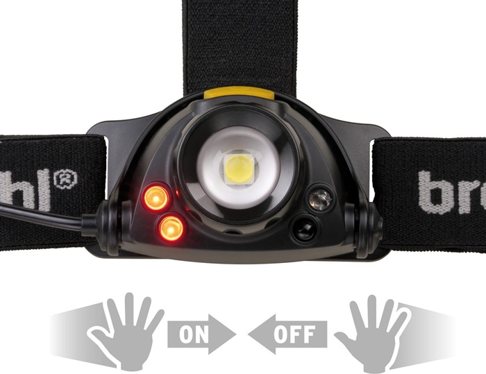 geeignet für die Verwendung in Außenbereichen · 400 lm · IP44 · zwei Betriebsmodi (manuell und Infrarot-Sensor) · Kopflicht 100% - 40% -10% - SOS – Rot Rücklicht rot · rot blinken · Infrarot-Sensor für berührungsloses Ein- und Ausschalten · AkkuPack am Hinterkopf für gute Balance · stufenloser Fokus von flächigem Nahlicht zu fokussiertem Fernlicht · austauschbarer Li-Ion Akku mit Ladeanzeige · Leuchtweite: 80 m