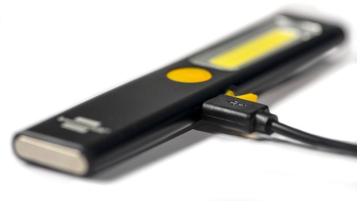 mit COB LED · Leuchtdauer von bis zu 12 h · geeignet für Haushalt oder Werkstätten · mit praktischem Clip und Magnet im Haltefuß · Funktionen: 100% - 40% - 10% - rot - rot blinken · integrierter Li-Pol-Akku 3,7 V / 450 mAh mit Ladeanzeige · Ein/Aus Schalter · Lichtstrom: 200 lm · Leuchtdauer: max. 12 h · Farbtemperatur: 6500 K