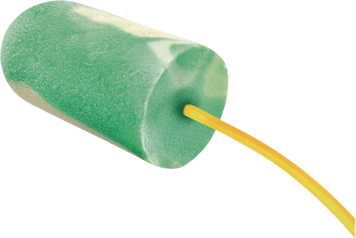 EN353-2:2020 · Einweg-Gehörschutzstöpsel mit Kordel · aus biobasiertem Schaum mit "BioSoft Technology" · niedriger Druck und weich für hervorragenden Komfort · konisch geformt für beste Anpassung an den Gehörgang EN 352-2 / (SNR) = 38 dB (A) / H-Wert = 37 dB (A) / M-Wert = 36 dB (A) / L-Wert = 35 dB (A)