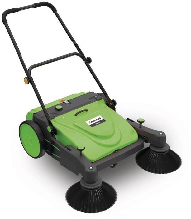 für Kehrgut aller Größen, von flach liegendem Papier bis hin zu Getränkedosen · höhenverstellbare, verschleißfeste Polyamid Kehrwalzen und Seitenbesen für unterschiedliche Bodenverhältnisse · zwei integrierte Kehrgutbehälter · Staubfilter · einklappbarer Griff