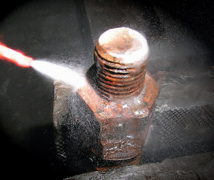 doppelt stark gegen Rost · mit Kälteschock Effekt · ein Kältemittel vereist die besprühte Oberfläche auf bis zu -40 °C und sprengt dadurch die Rost- und Schmutzstruktur · es entstehen feinste Risse und Zwischenräume, in die das Kriechöl schneller und tiefer eindringen kann · Reibkräfte werden reduziert und festsitzende Schrauben, Bolzen, Schieber usw. können mühelos gelöst werden · hinterlässt einen feinen Schutzfilm und beugt dadurch künftiger Rostbildung vor · säure- und silikonfrei
