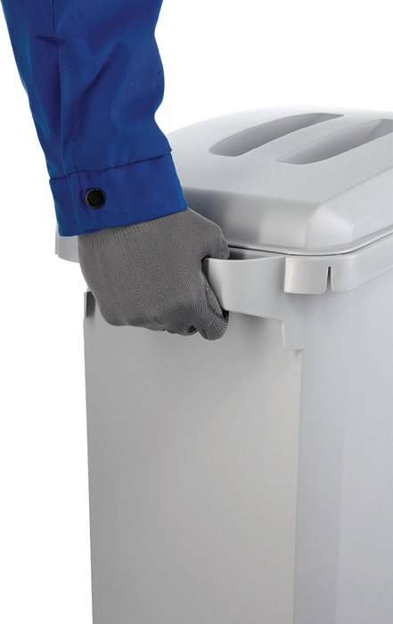für Müll-Wertstoffsammlung · aus stabilem Polypropylen (PP) · die farbigen Deckel (Zubehör) erleichtern die Abfalltrennung
