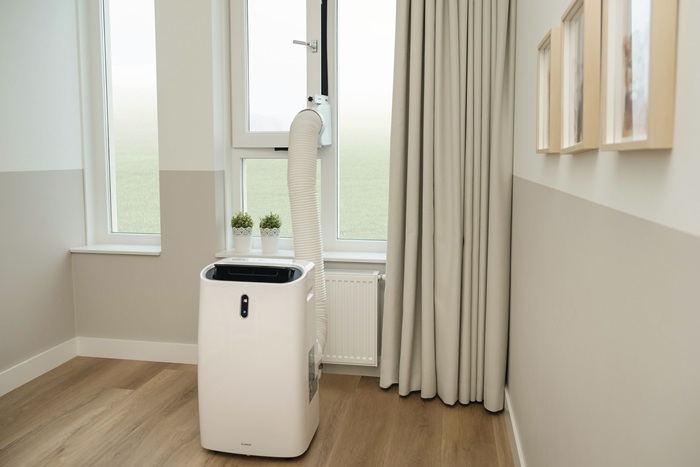 für die Entlüftung von mobilen Klimageräten · zum Absaugen warmer Luft · mit den 3 mitgelieferten Schaumstoffstücken fixiert · Kunststoff · geeignet für Klimageräte bis zu 18.000 BTU / 5275 W