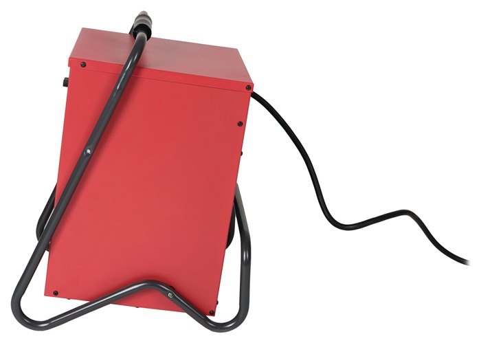 elektrische 400-V-Heizlüfterheizung · für den Einsatz in Werkstätten, Schuppen und Garagen · 9000 Watt · mit Kaltluftventilator und Thermostat · spritzwassergeschützt · robustes Metallgehäuse · Überhitzungsschutz · mit Nachkühlfunktion