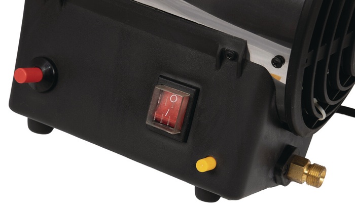 Heißluftpistole · Leistung von 10 kW · Luftverdrängung von 300 m³ pro Stunde dafür · für Räume bis zu 350 m³ · verwendet Sauerstoff zur Verbrennung · sehr hohen Wirkungsgrad von fast 100% · eine gute Belüftung ist wichtig · mit Schlauch und Regler geliefert