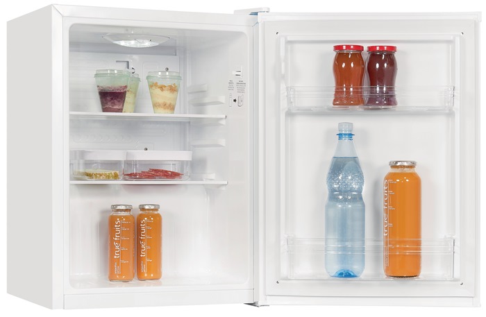 Mini-Kühlschrank · Nutzinhalt: 52 l · 2 Glasablagen · 2 Türablagen · Thermostat-Beleuchtung