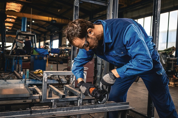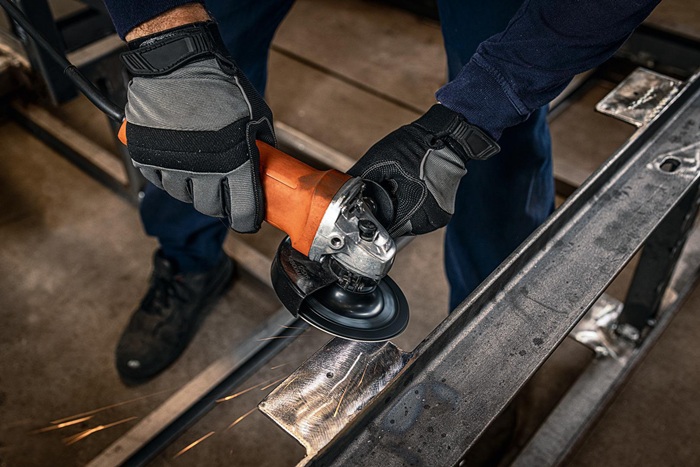 Compact-Winkelschleifer · Vollmetall-Getriebekopf in 90° Schritten drehbar · Wiederanlaufschutz · geringes Umgreifmaß