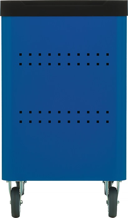 robuste Stahlblechkonstruktion · GEDORE blau pulverbeschichtet (RAL 5017) · mit 6 auf kugelgelagerten Führungsschienen herausziehbaren Schubladen mit 100% Auszug · seitliche Abrundungen, Minimierung von Stoßkanten · Arbeitsplattform mit Abdeckung aus PP-Kunststoff mit Rollschutzkante (Schutz vorm Herabfallen von Kleinteilen) · Euro-Lochung (10x38) an beiden Seiten, ermöglicht das individuelle Bestücken von Haken und Werkzeugen · wendig und leicht zu steuern dank des Fahr-& Lenkgriffes · Einzelauszugssperre verhindert das selbstständige Öffnen mehrerer Schubladen · abschließbar mittels eingebautem Zylinderschloss inkl. 2 Schlüssel Maß über alles aufgebaut inkl. Räder, ohne Griff (B x T x H) 625 x 510 x 903 mm Innenmaß Schubladen (B x T x H) 5 x 480 x 400 x 80 mm Innenmaß Schubladen (B x T x H) 1 x 480 x 400 x 160 mm Tragkraft pro Schublade 20 kg / statische Gesamtbelastbarkeit 300 kg