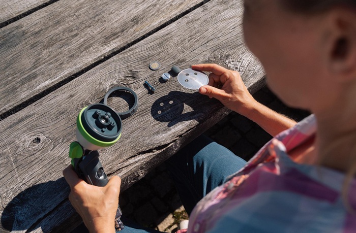 robust und langlebig dank hochwertigen Metallkomponenten · 5 Sprühbilder: Brause, Brause schmal, Vollstrahl, Flachstrahl und Sprühnebel · die Sprühbilder werden über einen Ring mit Piktogrammen ausgewählt · Wasserdurchflussmenge individuell einstellbar · kann mit einer Hand dauerarretiert werden · von beiden Seiten bedienbar · einfache Reinigung der Platine und des Ventils durch Clean + Repair · werkzeugloser Zugang zu Platine und Ventilsatz zur Wartung und Reinigung, Ersatzteile verfügbar