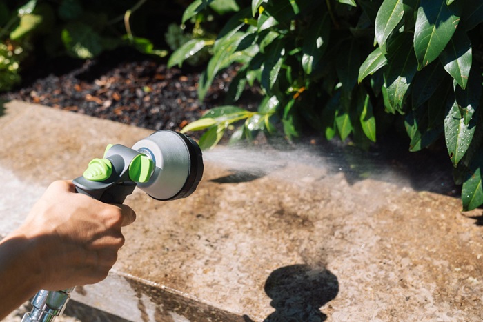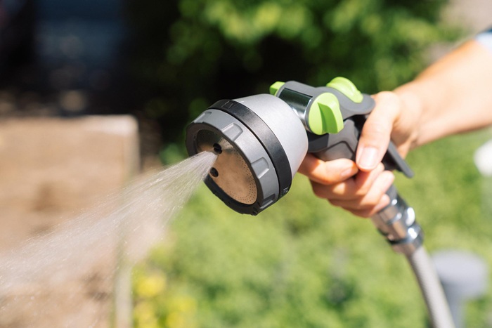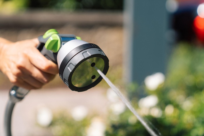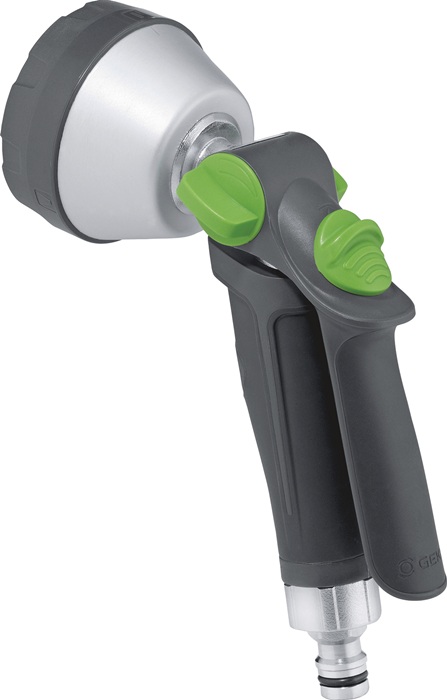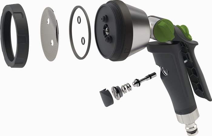 robust und langlebig dank hochwertigen Metallkomponenten · 3 Sprühbilder: Brause, Vollstrahl und Flachstrahl · die Sprühbilder werden über einen Ring mit Piktogrammen ausgewählt · Wasserdurchflussmenge individuell einstellbar · kann mit einer Hand dauerarretiert werden · von beiden Seiten bedienbar · einfache Reinigung der Platine und des Ventils durch Clean + Repair · werkzeugloser Zugang zu Platine und Ventilsatz zur Wartung und Reinigung, Ersatzteile verfügbar