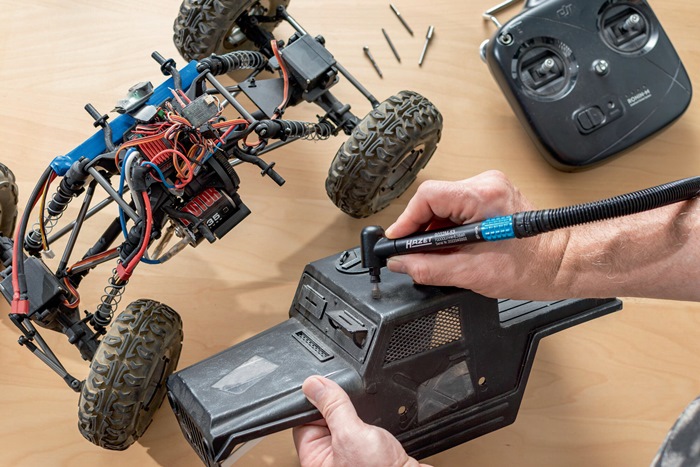 zur präzisen Bearbeitung von Werkstücken auch unter extrem beengten Platzverhältnissen · Schlauchlänge 1500 mm · Drehventil