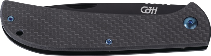 Carbon-Griffschale · Klinge schwarz beschichtet aus rostfreiem Stahl 420 · Framelock · Gürtelclip
