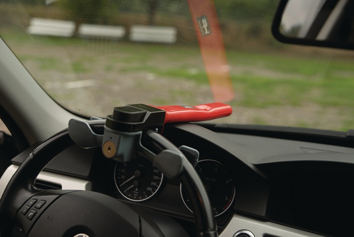 universal passend · blockiert die Lenkung sichtbar · schnelle und einfache Montage durch Schnellverschluss · Spezial-Sicherheitsschloss mit 2-Stern-Schlüsseln · sehr stabile Ausführung · SB Verpackung