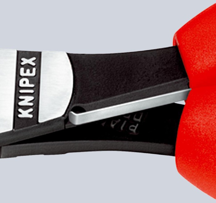 20 % Kraftersparnis gegenüber herkömmlichen Seitenschneider · mit Öffnungsfeder · Schneiden zusätzlich induktiv gehärtet, Schneidenhärte ca. 64 HRC · Chrom-Vanadin-Hochleistungsstahl, geschmiedet, mehrstufig ölgehärtet Zange schwarz atramentiert · Kopf poliert
