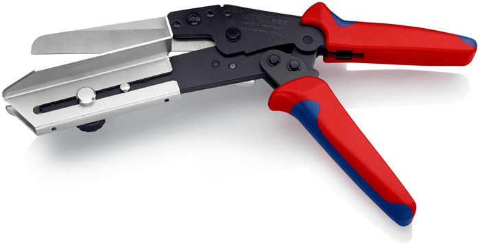 zum Trennen und Ablängen von Kabelkanälen, auch für Kunststoffe · spezielle Kniehebelübersetzung · Werkzeugkörper: Chrom-Vanadin-Elektrostahl in Sondergüte, ölgehärtet · Messer: Spezial-Werkzeugstahl, ölgehärtet Werkzeug brüniert · mit Mehrkomponenten-Hüllen