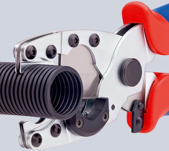 für Verbund- und Schutzrohre · zum Schneiden von Verbundrohren Ø 12 - 25 mm und von flexiblen Schutzrohren Ø 18 - 35 mm ohne das innenliegende Rohr zu verletzen · Werkzeugkörper: Chrom-Vanadin-Elektrostahl in Sondergüte, ölgehärtet · Messer: Spezial-Werkzeugstahl, ölgehärtet, auswechselbar Werkzeug verzinkt · mit Mehrkomponenten-Hüllen