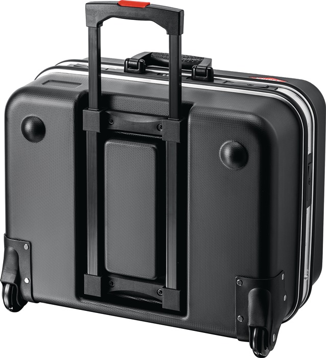 Gesamtbelastbarkeit max. 30 kg · umlaufender Aluminiumrahmen · 2 Metall-Kippschlösser · 3-stelliges Zahlencodeschloss · integriertes Fahrgestell mit Teleskopgriff und leichtgängigen Rollen Außenmaße: 520 x 435 x 290 mm (B x T x H)