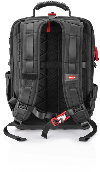 aus nachhaltigen Recycling-Kunstfasern · komplett aufklappbare Vorder- und Rückseite · herausnehmbare Werkzeugtafel und ergonomischer Rückenpolsterung · 2 separate Innenfächern für Werkzeug, Messgeräte, Notebook oder Tablet · innen 1 und außen 4 MOLLE-Bänder zur Befestigung von beliebigen Adaptern, Karabinern, Zubehör je nach Bedarf · 21 Haltelaschen und 37 Taschen, teilweise mit Reißverschlüssen · mit Kofferlasche zur Fixierung an Teleskopgriffen von Werkzeugkoffern · Leergewicht 2,9 kg · geprüfte Belastbarkeit bis 15 kg Werkzeuggewicht Besondere Produktvorteile: Widerstandsfähiges Nylongewebe, spritzwassergeschützt und leicht zu reinige. Wasserdichte Bodenschale aus schlagfestem Kunststoff für stabilen Stand im geöffneten und geschlossenen Zustand.