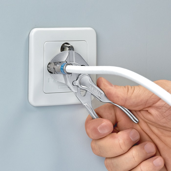 ersetzt einen Satz Schraubenschlüssel, metrisch wie zöllig · glatte Backen für die schonende Montage von oberflächenveredelten Armaturen · Arbeiten direkt auf Chrom · Klemmschutz Zange verchromt