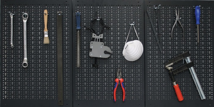 aus stabilem Stahlblech · kratzfeste Pulverbeschichtung · bestehend aus 3 Lochwandplatten à 40 cm · mit Schlüssel-Lochung · anthrazit