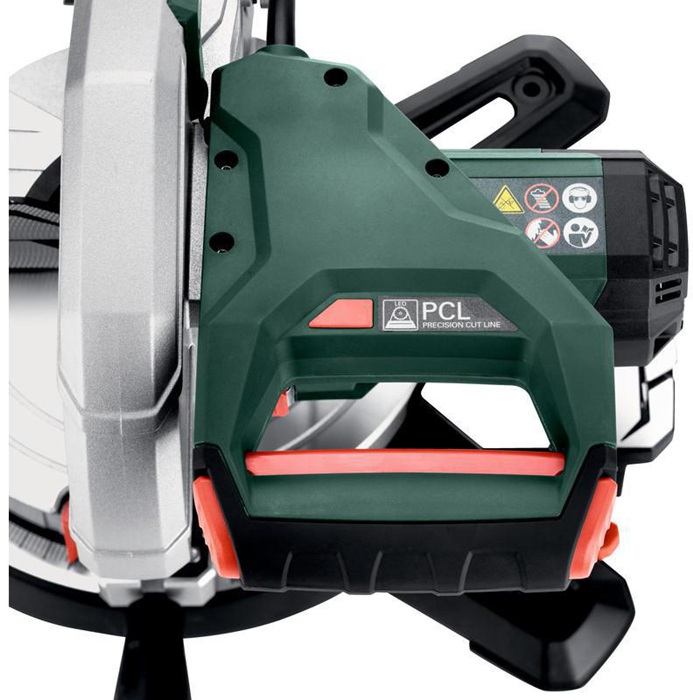 mit Zugfunktion · Precision Cut Line (PCL): exakte Schatten-Schnittlinie ohne Nachjustieren durch clever platzierte LED · Drehteller mit Einstellung gängiger Winkel über Rastpunkte · Aluminiumdruckguss · Spänefangtrichter · Sanftanlauf · ausziehbare Tischverbreiterungen · Schnellspannzwinge · Tiefenanschlag · alle Skalen und Bedienelemente gut einsehbar und intuitiv bedienbar · Griffbereiche für ein- oder beidhändiges Tragen