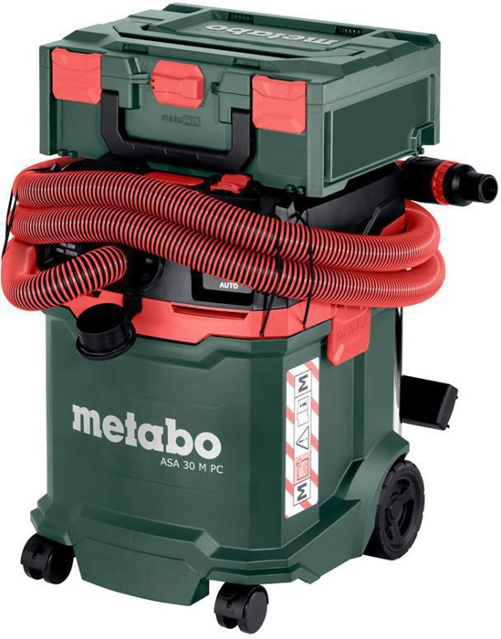 kompakter vielseitig einsetzbarer Sauger der Staubklasse H mit integrierter Filterabreinigung · schnelles Koppeln von metaBOXen mit Werkzeug und Zubehör auf dem Sauger für einfachen Standortwechsel · Nass-/Trockensauger mit gewerblicher Zulassung zum Absaugen an Elektrowerkzeugen und zum Reinigen von Baustelle · Werkstatt usw. Gerätesteckdose für ein Elektrowerkzeug zur Nutzung der Ein-/Ausschaltautomatik des Saugers PressClean: manuelle Filterabreinigung durch starken Luftstrom bei Schalterbetätigung am Sauger in den Arbeitspausen · maximaler Anwenderschutz: zertifiziert durch EU-Norm für Stäube der Staubklasse H Saugstopp beim Nasssaugen · wenn die maximale Füllhöhe erreicht wird Warnsignal bei Unterschreitung des Mindestvolumenstroms zum Schutz des Anwenders · Nachlaufautomatik zum völligen Entleeren des Saugschlauches · Antistatik-Grundausstattung verhindert statische Aufladung bei Verwendung des geeigneten Zubehörs · einfacher Transport dank Kabel- und Schlauchhalterung sowie Depot für Rohre und Düsen · praktisches Zubehörfach mit Klappdeckel für Kleinteile · mitgeliefertes Saugerzubehör mit Quick-System für schnelles Umrüsten im Einsatz