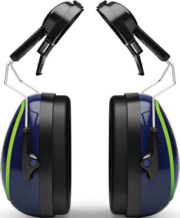 Helm-Gehörschutzkapseln mit Adapter für Helme mit 30-mm-Schlitz · extra große Ohrmuschel · Ohrpolster aus viskoelastischem Schaum – bessere Druckverteilung für mehr Komfort EN 352-3 / (SNR) = 31 dB / H-Wert = 34 dB / M-Wert = 29 dB / L-Wert = 22 dB