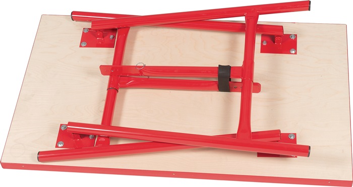 Untergestell aus stabilem Stahlrohr · anklappbar · Buchen-Multiplexplatte mit Kantenschutz · äußerst stabil
