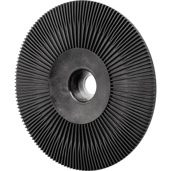 Hochleistungs-Stützteller mit hoher Standzeit durch abriebfesten, glasfaserverstärkten Kunststoff · besonders kühlen Schliff aufgrund von radial verlaufenden Kühlrippen sowie hoher Abtragsleistung der Fiberschleifer durch eine stabile, starre Ausführung